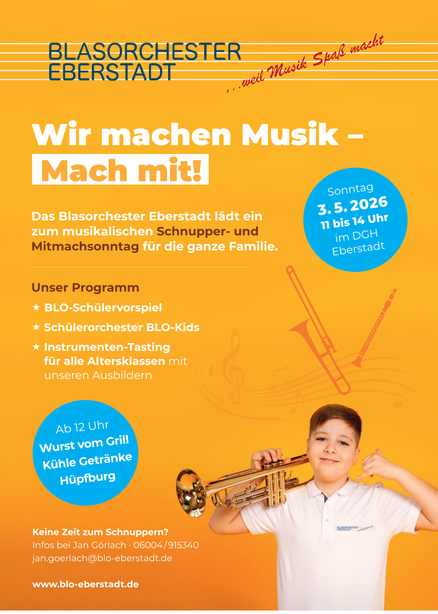 .. beim Blasorchester Eberstadt. Wir freuen uns, dass Sie sich für unser Orchester interessieren und wünschen Ihnen viel Spaß auf unseren Internet-Seiten.